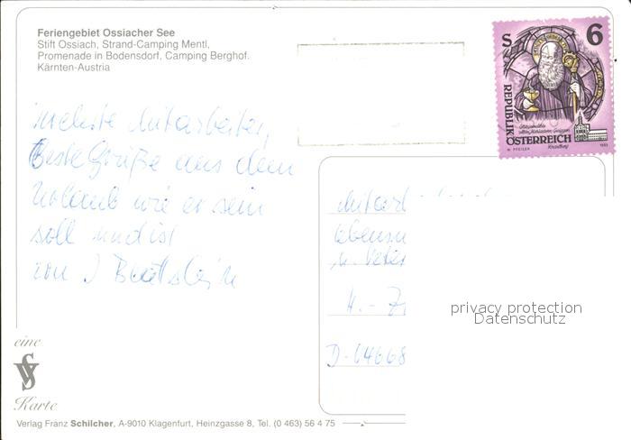 72354620 alte Postkarte Ossiach Stift Ossiach Strand Camping Mentl Promenade Camping Berghof postalisch gelaufen Erhaltung siehe scans KatCode: 11390212021006
