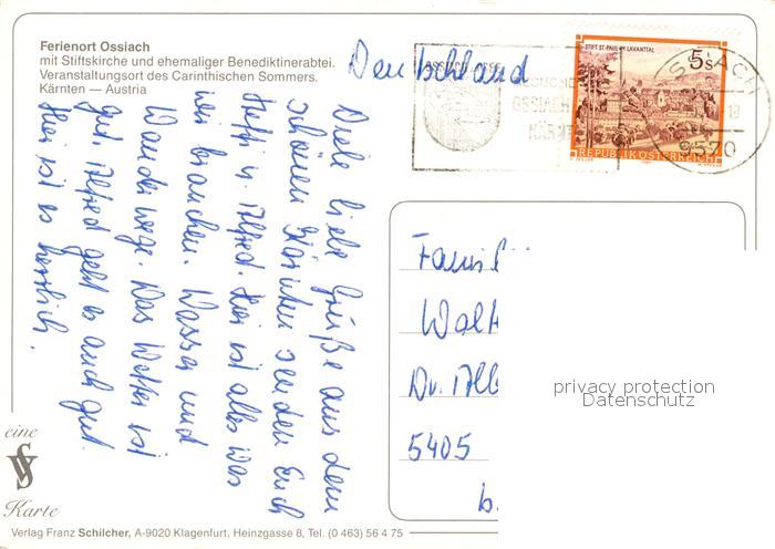 73297704 alte Postkarte Ossiach Stiftskirche Benediktinerabtei postalisch gelaufen Erhaltung siehe scans [PaolaD17] KatCode: 11390212021006