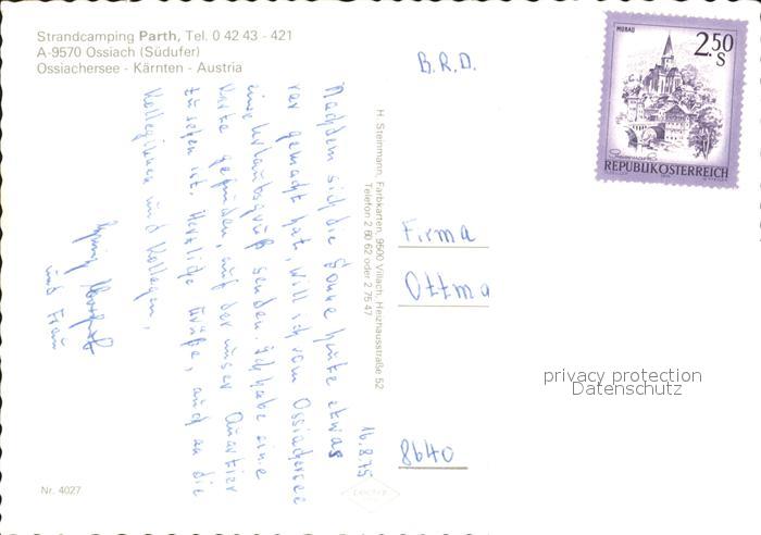 72034318 Ossiach Strandcamping Parth postalisch nicht gelaufen Erhaltung siehe scans KatCode: 11390212021006