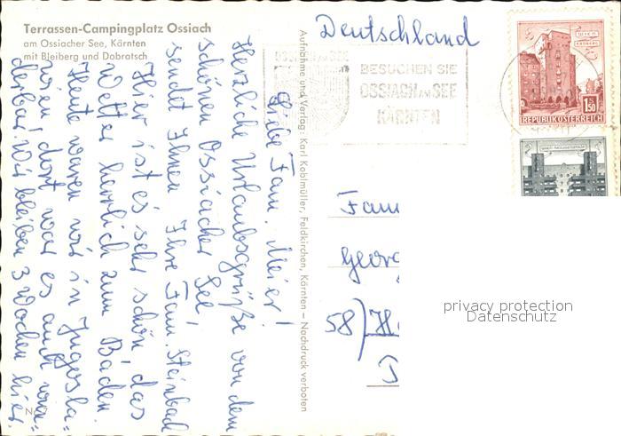 72437542 alte Postkarte Ossiach Terrassen-Campingplatz postalisch gelaufen Erhaltung siehe scans KatCode: 11390212021006