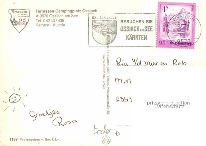 72663452 alte Postkarte Ossiach Terrassen Campingplatz Fliegeraufnahme postalisch gelaufen Erhaltung siehe scans [FriedD77] KatCode: 11390212021006