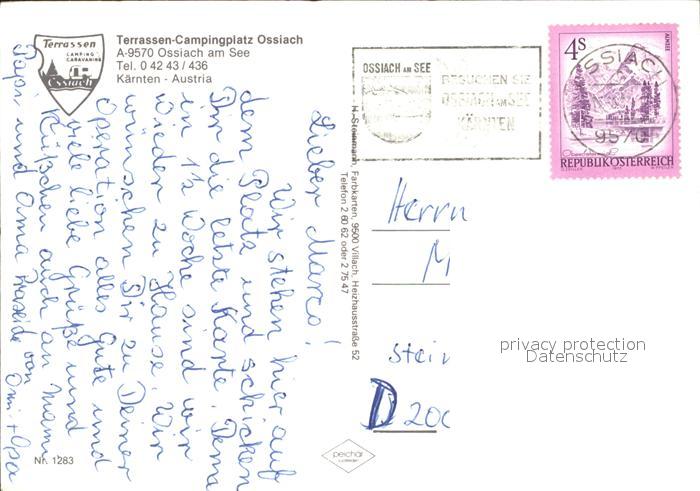 72034391 alte Postkarte Ossiach Terrassen Campingplatz Ossiach Segelboot postalisch gelaufen Erhaltung siehe scans KatCode: 11390212021006