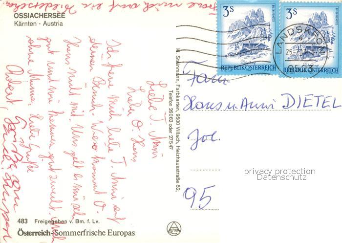 73223988 alte Postkarte Ossiachersee Fliegeraufnahme postalisch gelaufen Erhaltung siehe scans [KathaD81] KatCode: 11390212021006
