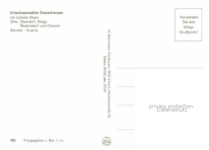 72800625 Ossiachersee Julische Alpen Orte Steindorf Stiegl Bodensdorf Fliegeraufnahme postalisch nicht gelaufen Erhaltung siehe scans [FriedD77] KatCode: 11390212021006