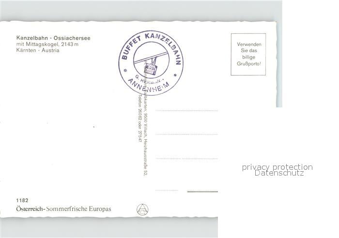 71920152 Ossiachersee mit Kanzelbahn postalisch nicht gelaufen Erhaltung siehe scans KatCode: 11390212021006