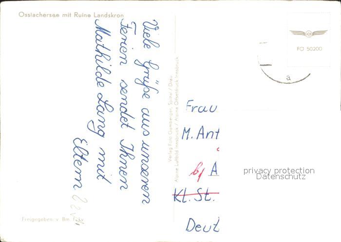 72065768 alte Postkarte Ossiachersee mit Ruine Landskron Fliegeraufnahme postalisch gelaufen Erhaltung siehe scans KatCode: 11390212021006