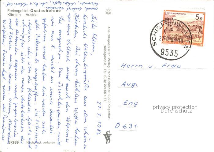72469923 alte Postkarte Ossiachersee mit Ruine Landskron Villach St Andrae St Ruprecht Camping Annenheim postalisch gelaufen Erhaltung siehe scans KatCode: 11390212021006