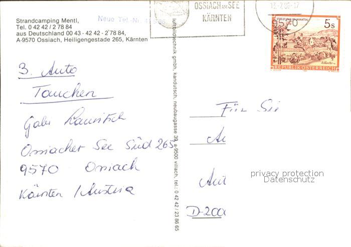72071407 alte Postkarte Ossiachersee Strand Camping Mentl Fliegeraufnahme postalisch gelaufen Erhaltung siehe scans KatCode: 11390212021006