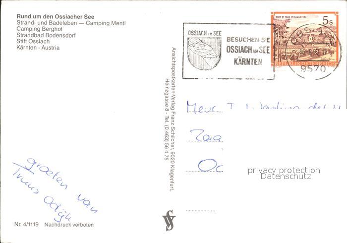 72092270 alte Postkarte Ossiachersee Strandleben Camping Mentl Camping Berghof Strandbad Bodensdorf Stift Ossiach postalisch gelaufen Erhaltung siehe scans KatCode: 11390212021006