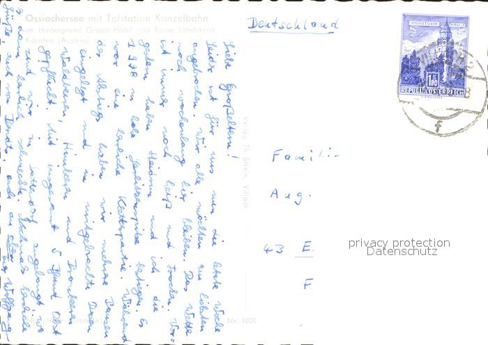 71938915 alte Postkarte Ossiachersee Talstation Kanzelbahn Grand Hotel Ruine Landskron postalisch gelaufen Erhaltung siehe scans KatCode: 11390212021006