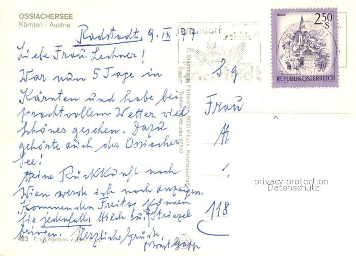 73311220 alte Postkarte Ossiachersee und Umgebung Fliegeraufnahme postalisch gelaufen Erhaltung siehe scans [FriedD77] KatCode: 11390212021006