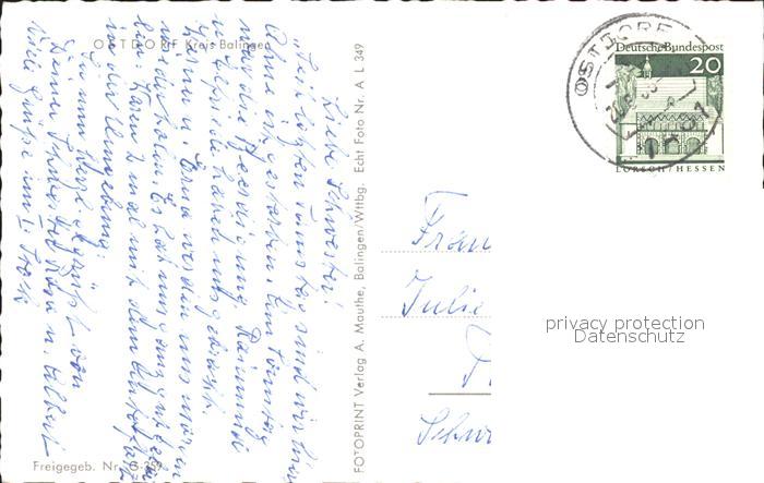 41789884 alte Postkarte Ostdorf Fliegeraufnahme postalisch gelaufen Erhaltung siehe scans KatCode: 11110008417002