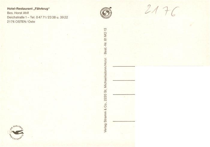 73885037 Osten Oste Hotel Restaurant Faehrkrug Bar Gastraum Terrasse Bootsanlegestelle postalisch nicht gelaufen Erhaltung siehe scans [FriedD77] KatCode: 11110003352044