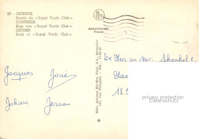 73357473 carte postale Ostende Oostende Bassin du Royal Yacht Club postalisch gelaufen Erhaltung siehe scans [WerneD78] KatCode: 11070031004477