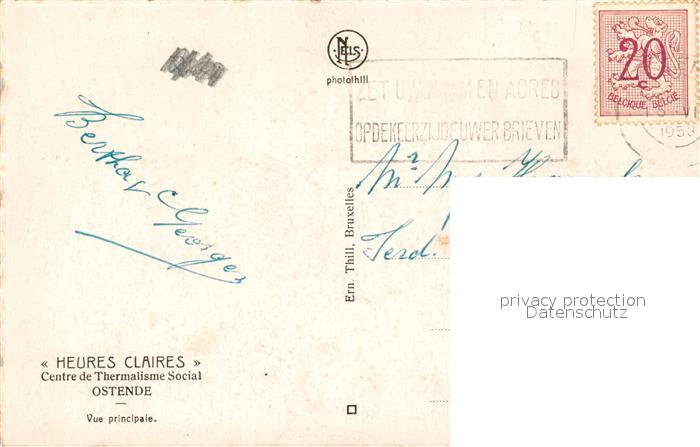 13516223 carte postale Ostende Oostende Heures Claires Centre de Thermalisme Social Vue principale postalisch gelaufen Erhaltung siehe scans [WerneD78] KatCode: 11070031004477