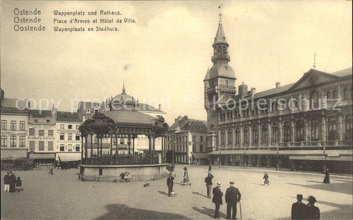 11712410 Ostende Oostende Wappenplatz Rathaus Place d Armes Hotel de Ville Wappenplatz Rathaus Place d’Armes Hotel de Ville Wohlfahrtskarte Reichsverband zur Unterstuetzung deutscher Veteranen postalisch nicht gelaufen Erhaltung siehe scans KatCode: 11070031004477