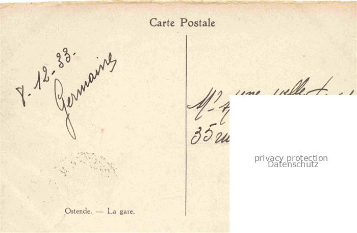 74011855 carte postale OSTENDE Oostende West-Vlaanderen Belgie La gare postalisch gelaufen Erhaltung siehe scans [FriedD77] KatCode: 11070031004477