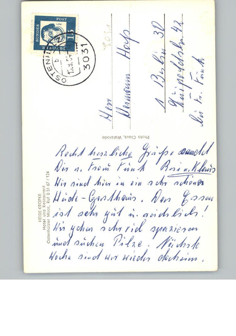 31123886 Ostenholz Hotel Hiede Kroepke postalisch nicht gelaufen KatCode: 11110003358501