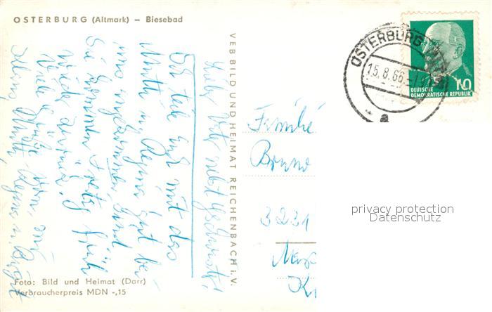 73277550 alte Postkarte Osterburg Altmark Biesebad postalisch gelaufen Erhaltung siehe scans [LiesaD40] KatCode: 11110015090415