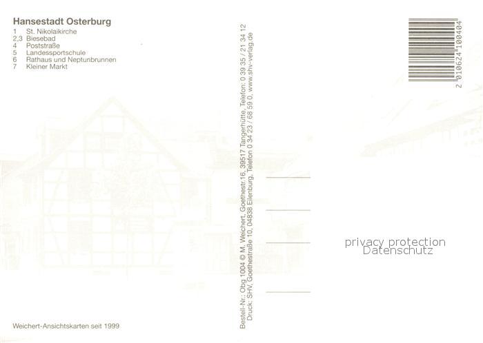 73228862 Osterburg Altmark Nikolaikirce Biesebad Poststrasse Landessportschule Rathaus Markt postalisch nicht gelaufen Erhaltung siehe scans [KathaD81] KatCode: 11110015090415