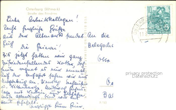 72189088 alte Postkarte Osterburg Altmark Strasse des Friedens postalisch gelaufen Erhaltung siehe scans KatCode: 11110015090415