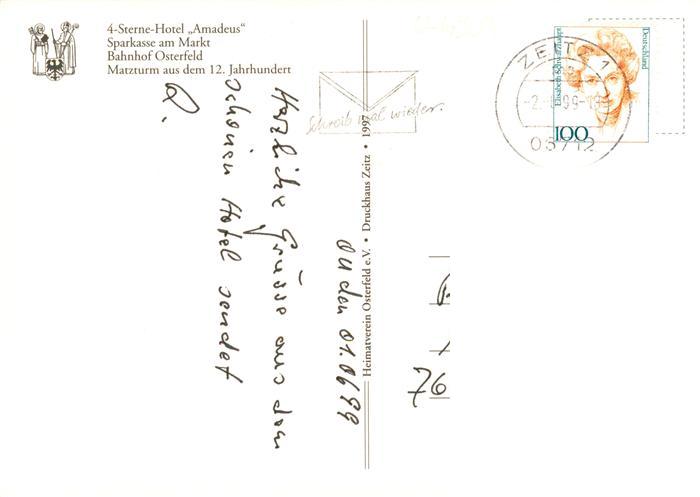 73947343 alte Postkarte Osterfeld Naumburg 4 Sterne Hotel Amadeus Sparkasse am Markt Bahnhof Matzturm postalisch gelaufen Erhaltung siehe scans [WerneD78] KatCode: 11110015084375