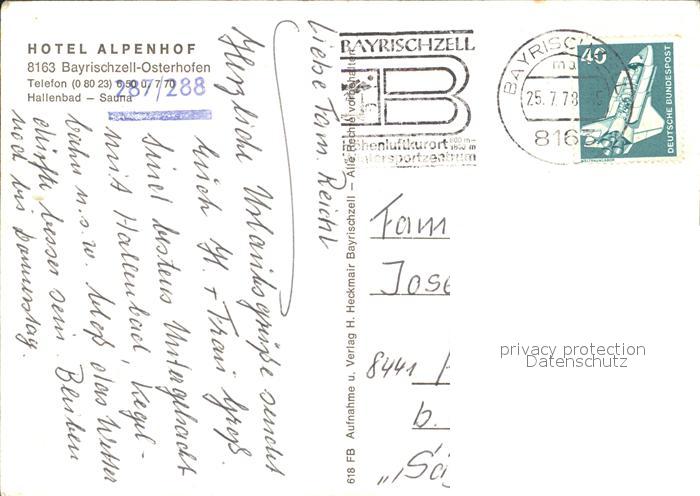 72134017 alte Postkarte Osterhofen Bayrischzell Hotel Alpenhof postalisch gelaufen Erhaltung siehe scans KatCode: 11110009182112