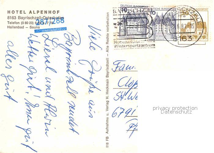72902629 alte Postkarte Osterhofen Bayrischzell Hotel Alpenhof Mangfallgebirge postalisch gelaufen Erhaltung siehe scans [FriedD77] KatCode: 11110009182112
