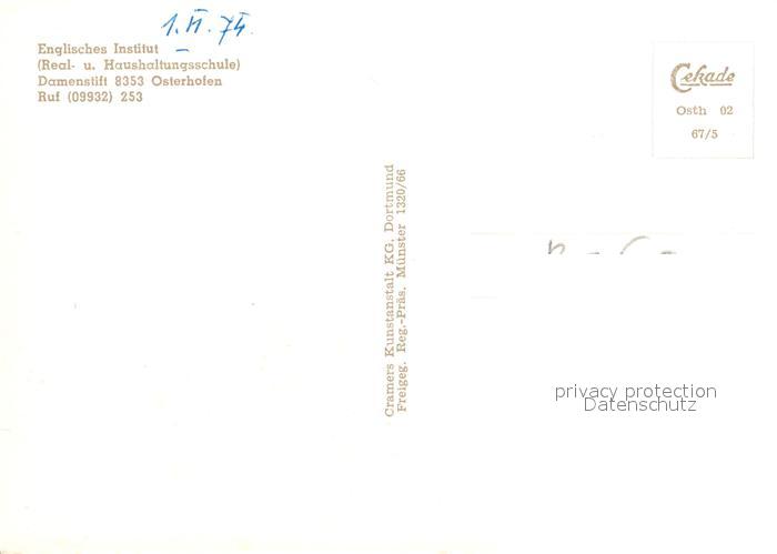 73027819 Osterhofen Niederbayern Fliegeraufnahme Englisches Institut postalisch nicht gelaufen Erhaltung siehe scans [KathaD81] KatCode: 11110009271141