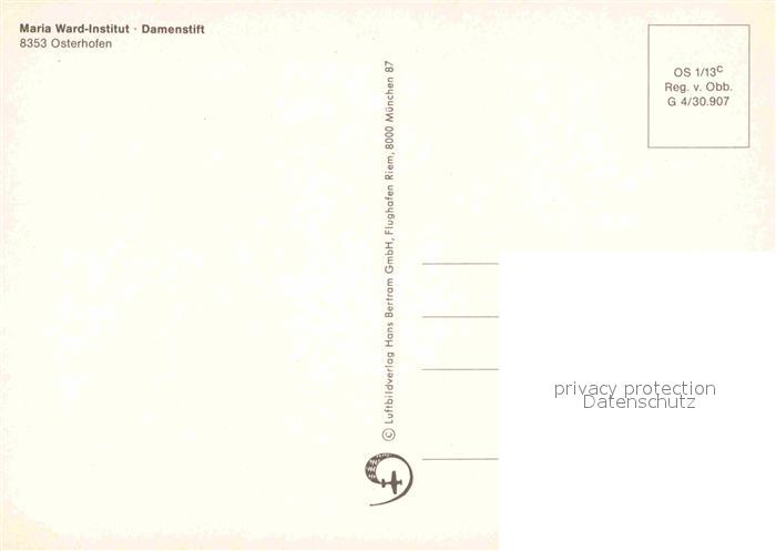 72892540 alte Postkarte Osterhofen Niederbayern Fliegeraufnahme Maria Ward Institut postalisch gelaufen Erhaltung siehe scans [AndreD76] KatCode: 11110009271141