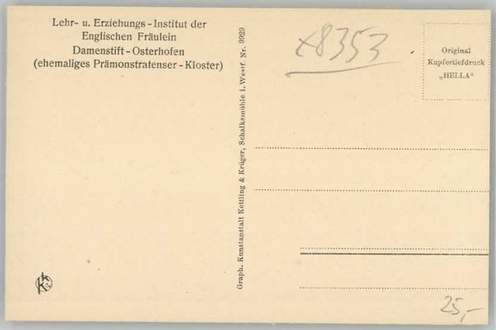 40221117 Osterhofen Niederbayern Prämonstratenser Kloster ungelaufen ca. 1920 KatCode 11110009271141