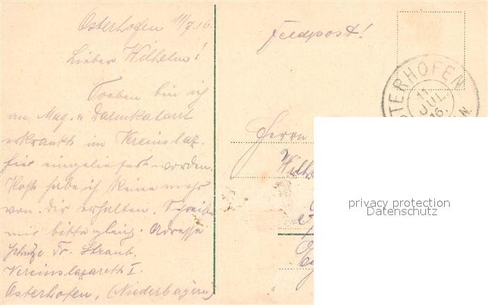 32981244 alte Postkarte Osterhofen Niederbayern Schulhaus postalisch gelaufen Feldpost Erhaltung siehe scans [NatalD47] KatCode: 11110009271141