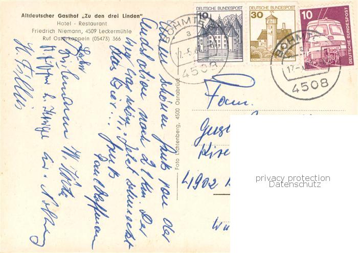 73751466 alte Postkarte Osterkappeln Altdeutscher Gasthof Zu den drei Linden Hotel postalisch gelaufen Erhaltung siehe scans [WerneD78] KatCode: 11110003459029