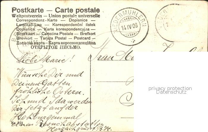 alte Postkarte Ostern Easter Paques Hasen Wagen Kind Eier Weidenkaetzchen postalisch gelaufen Erhaltung siehe scans