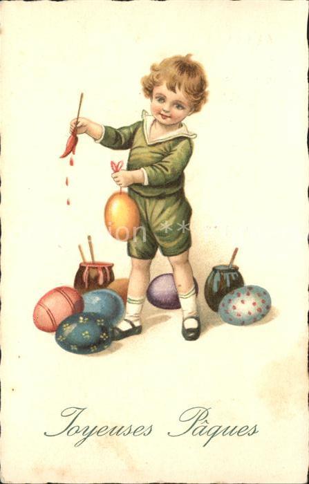 11794141 Ostern Easter Paques Kind Ostereier Pinsel Malerei Litho KatCode 22100000002700