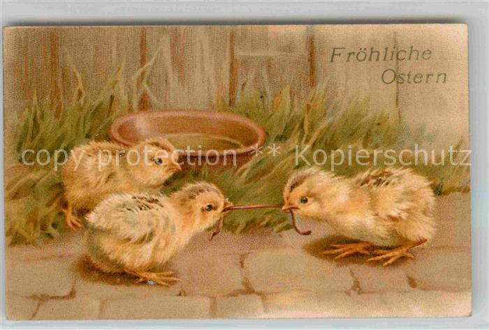 alte Postkarte Ostern Easter Paques Kueken Wurm Litho postalisch gelaufen Erhaltung siehe scans [PaolaD17]
