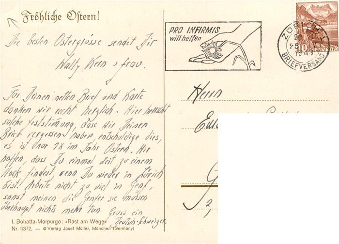 alte Postkarte Ostern Easter Paques Pasqua Hasen Eier Korb postalisch gelaufen Erhaltung siehe scans [IrynaD87]