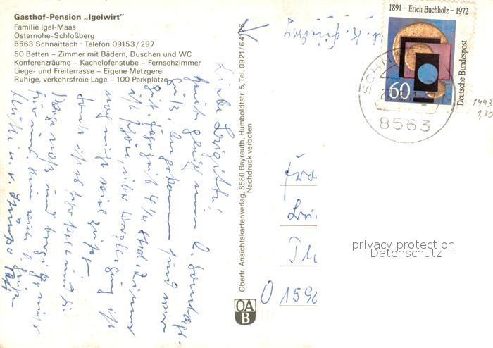 73654784 alte Postkarte Osternohe Gasthof Pension Igelwirt Restaurant Scheune Fachwerk Schlossberg Panorama postalisch gelaufen Erhaltung siehe scans [FriedD77] KatCode: 11110009574155