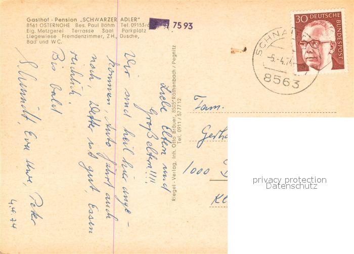 73724711 alte Postkarte Osternohe Gasthof Pension Schwarzer Adler Panorama postalisch gelaufen Erhaltung siehe scans [FriedD77] KatCode: 11110009574155
