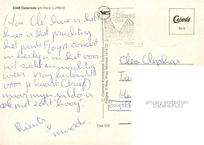 73228628 alte Postkarte Osterode Harz Fliegeraufnahme postalisch gelaufen Erhaltung siehe scans [NatalD47] KatCode: 11110003156011