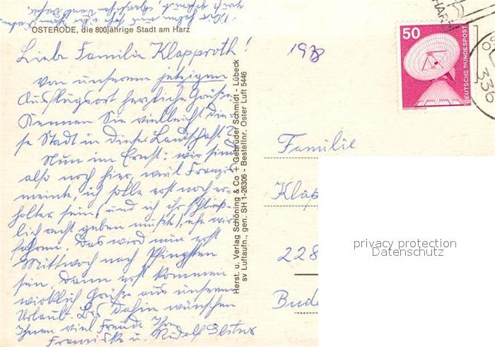 72959841 alte Postkarte Osterode Harz Fliegeraufnahme postalisch gelaufen Erhaltung siehe scans [WerneD78] KatCode: 11110003156011