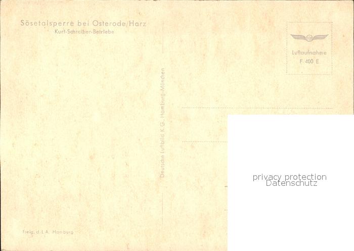 72585439 Osterode Harz Fliegeraufnahme Soeseltalsperre postalisch nicht gelaufen Erhaltung siehe scans [AndreD76] KatCode: 11110003156011