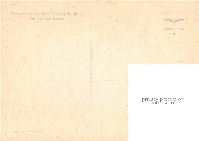 72845398 Osterode Harz Fliegeraufnahme Soesetalsperre postalisch nicht gelaufen Erhaltung siehe scans [AndreD76] KatCode: 11110003156011