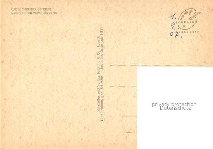 73227277 Osterode Harz Fliegeraufnahme Sosetalsperre postalisch nicht gelaufen Erhaltung siehe scans [LiesaD40] KatCode: 11110003156011