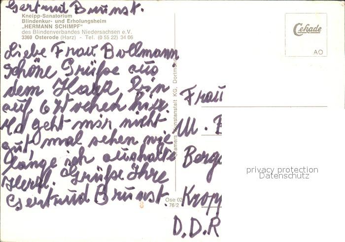 72608769 Osterode Harz Kneipp-Sanatorium Blindenkurheim Hermann Schimpf postalisch nicht gelaufen Erhaltung siehe scans [LiesaD40] KatCode: 11110003156011