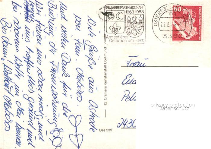 73121732 alte Postkarte Osterode Harz Kornmagazin Markt Schwimmbad Soesetalsperre Kirche Fussgaengerzone postalisch gelaufen Erhaltung siehe scans [KathaD81] KatCode: 11110003156011