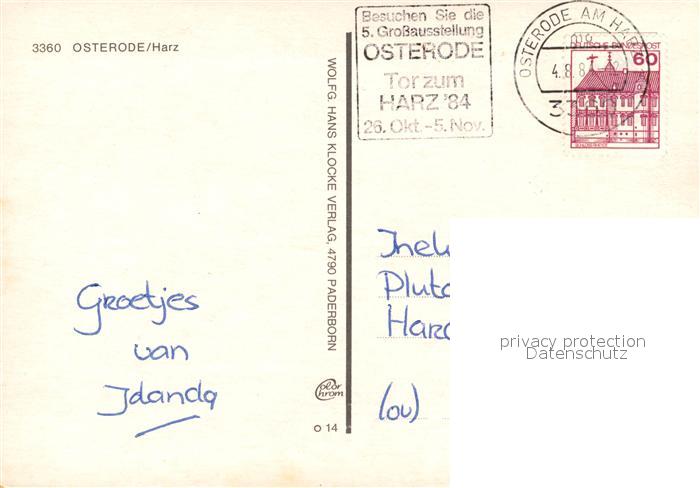 73308227 alte Postkarte Osterode Harz Kornmarkt mit Marktkirche Pferdeteich Kurpark postalisch gelaufen Erhaltung siehe scans [LiesaD40] KatCode: 11110003156011