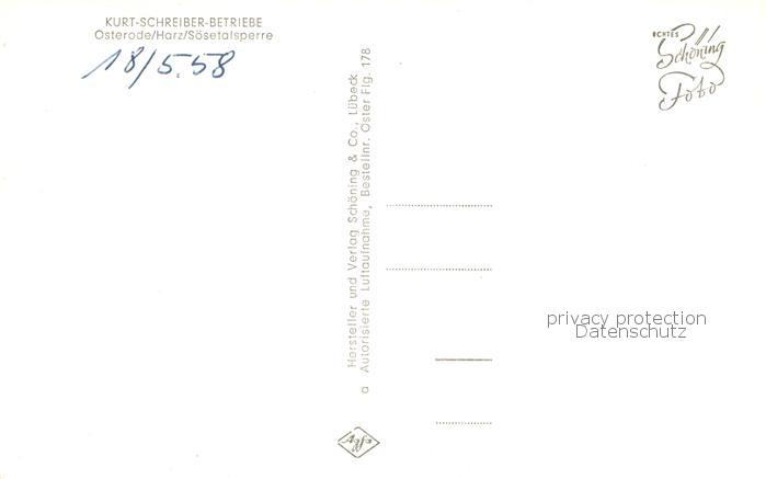 73764808 Osterode Harz Kurt Schreiber Betriebe Soesetalsperre postalisch nicht gelaufen Fliegeraufnahme Erhaltung siehe scans [FriedD77] KatCode: 11110003156011