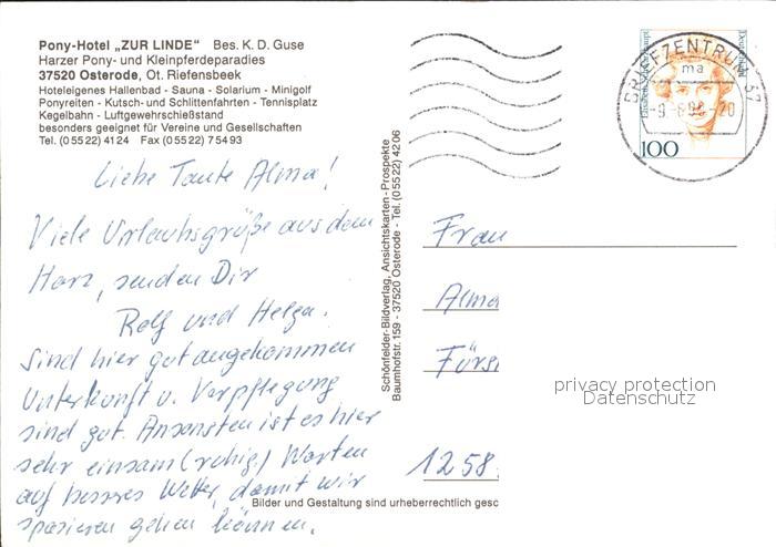 72333079 alte Postkarte Osterode Harz Pony-Hotel Zur Linde postalisch gelaufen Erhaltung siehe scans KatCode: 11110003156011
