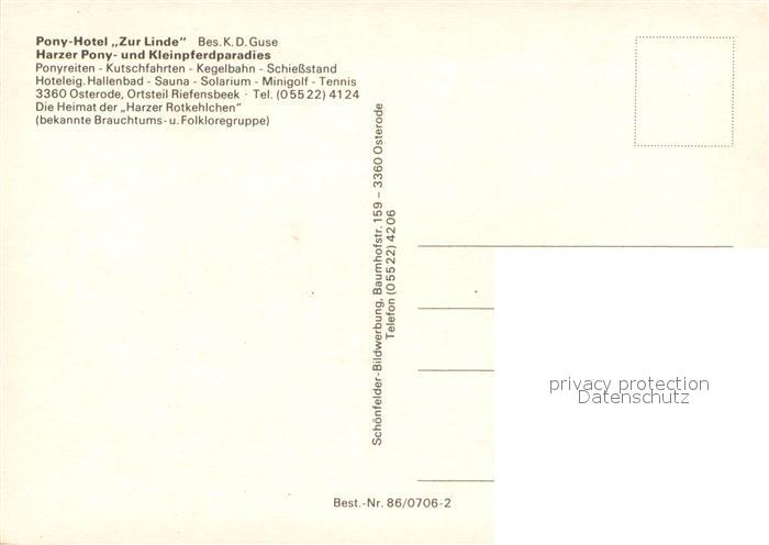 73724366 Osterode Harz Pony-Hotel Zur Linde postalisch nicht gelaufen Erhaltung siehe scans [LiesaD40] KatCode: 11110003156011